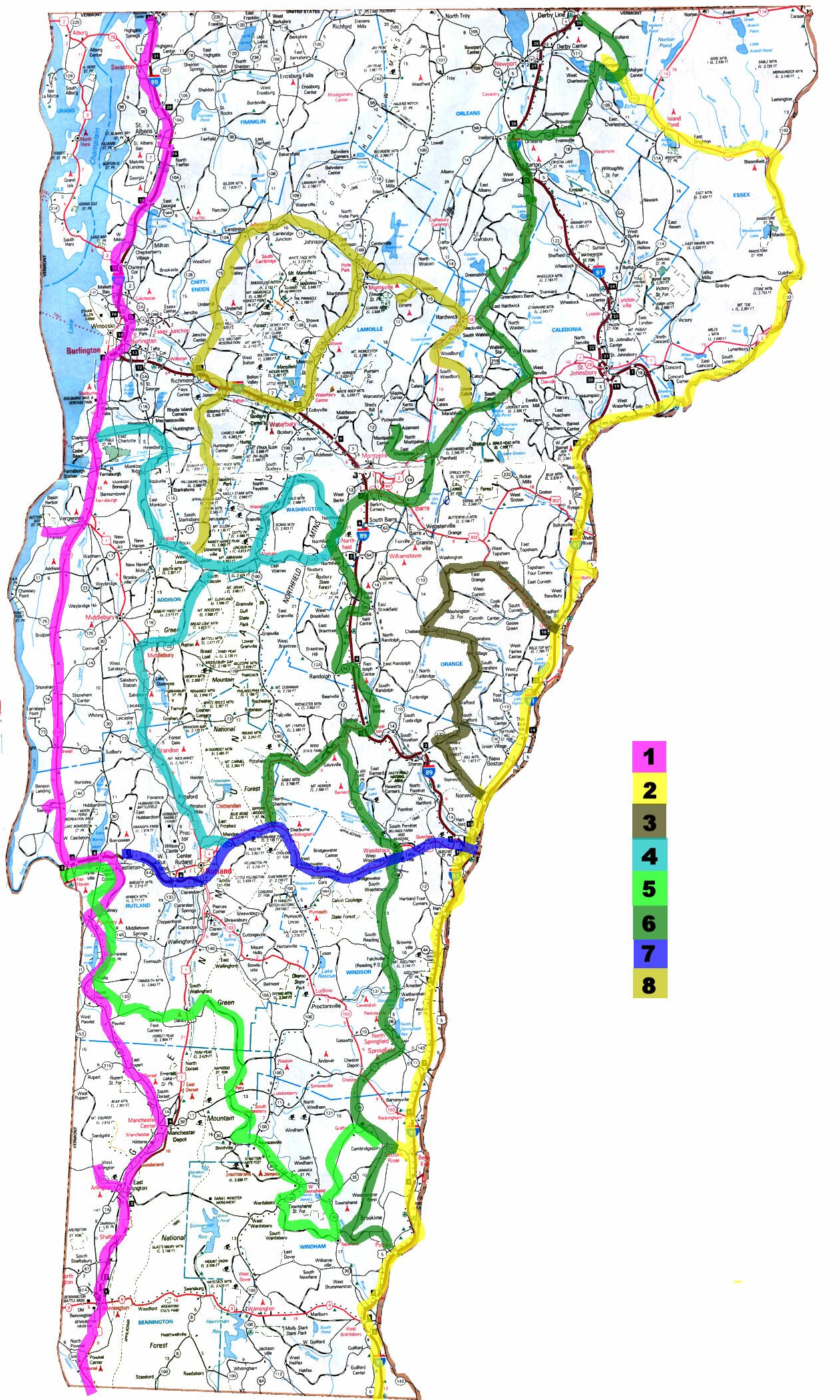 Rutland - Mendon - Pittsford - Ripton - Warren - Roxbury - Waitsfield And out via Burlington